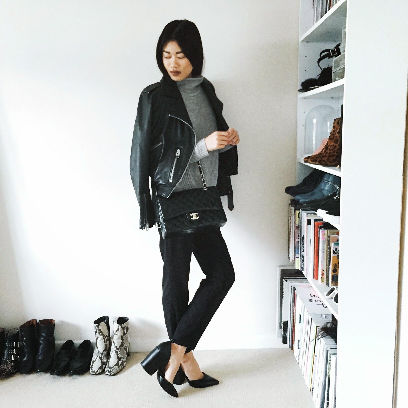 Kennen jullie Yanin van de Engelse blog I Dress Myself al? Een meisje met een heel eigen stijl, die ik super leuk vind. Eigenlijk zijn al haar outfits mooi en het lijkt wel of alles haar staat en niets haar niet staat.. snap je wat ik bedoel haha. Ook haar IG account is een kijkje waard. Deze lunch meeting outfit vind ik leuk omdat die casual is door de turtleneck maar toch chic door de pantalon en pointy heels. Alleen zijn ze niet je standaard Jimmy Choo model, maar edgy door de chunky hak. Een welverdiende like :). En.. geef mij die tas maar hoor!