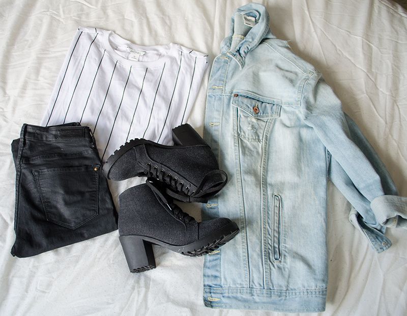 Top: Monki | Denim jacket: H&M (soortgelijke hier) | Nep leren broek: Zara | Canvas boots: Primark
